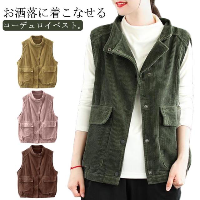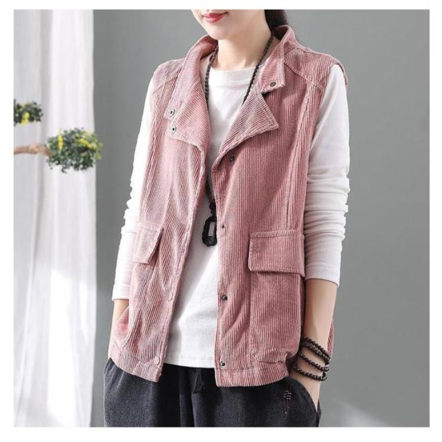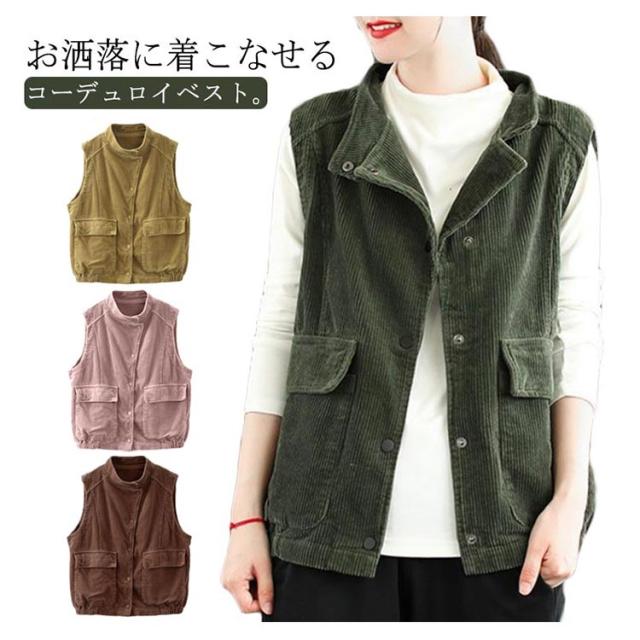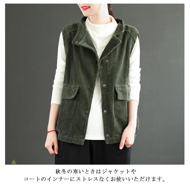 ブルゾン ジャケット ノースリーブ ベスト レディース ライトアウター コーデュロイベスト レディース コーデュロイ ベスト 前開き 羽織り あったか 冬 暖か 冷え取り 部屋着 春 秋 ポケット付き