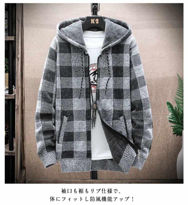 パーカー 裏起毛 ジップパーカー メンズ チェック柄 ボーダー柄 無地 裏起毛 フルジップパーカー カーディガン ニット パーカー 裏ボア コーディガン フード付き 羽織り カジュアル シンプル あったか ゆったり おしゃれ 秋冬