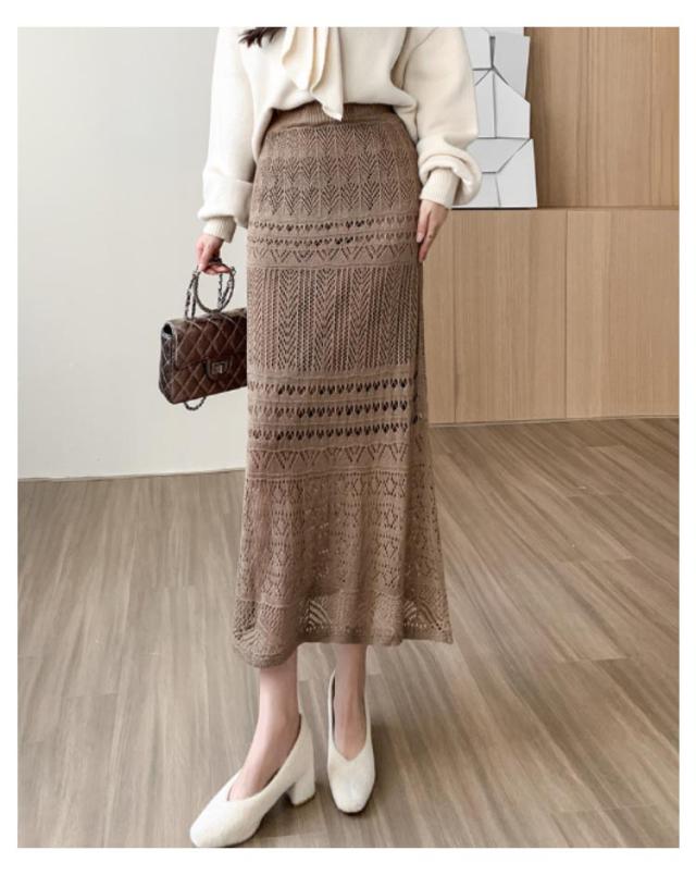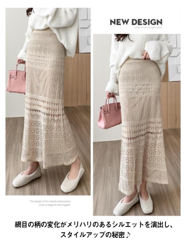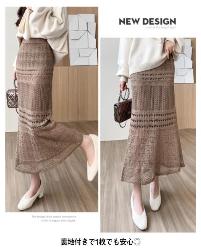 マーメイドスカート 透かし編み かぎ編み クロシェ編み ロングスカート ロング丈 膝下スカート レース ウェストゴム シースルー キレイめ オフィスカジュアル 入卒式 結婚式 セレモニー エレガント マキシ丈 スカート 春夏 秋冬