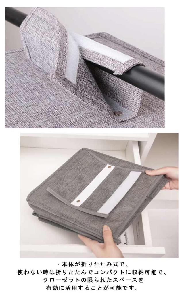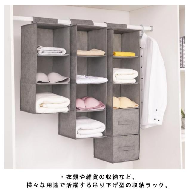 | ・衣類や雑貨の収納など、様々な用途で活躍する吊り下げ型の収納ラック。 ・暮らしになじむクローゼット収納。ハンガーポールに吊るすハンギングタイプで便利! ・引き出し付きだから小物もまとまる! ・本体が折りたたみ式で、使わない時は折りたたんでコンパクトに収納可能で、クローゼットの限られたスペースを有効に活用することが可能です。 ・クローゼットに吊るして、TシャツやYシャツ、セーターなどの衣服だけでなく、カバンや帽子などの収納にも最適。 ・クローゼットやハンガーラックのパイプにマジックテープで巻きつけるだけの簡単設置。 | |