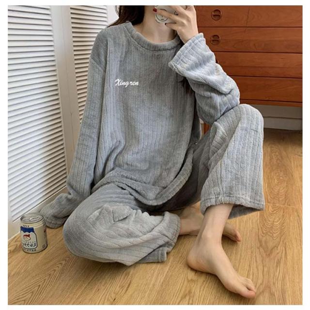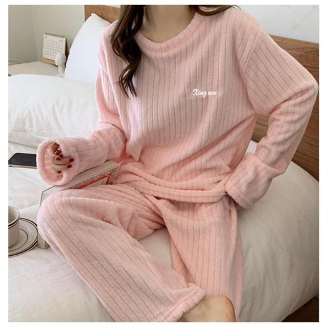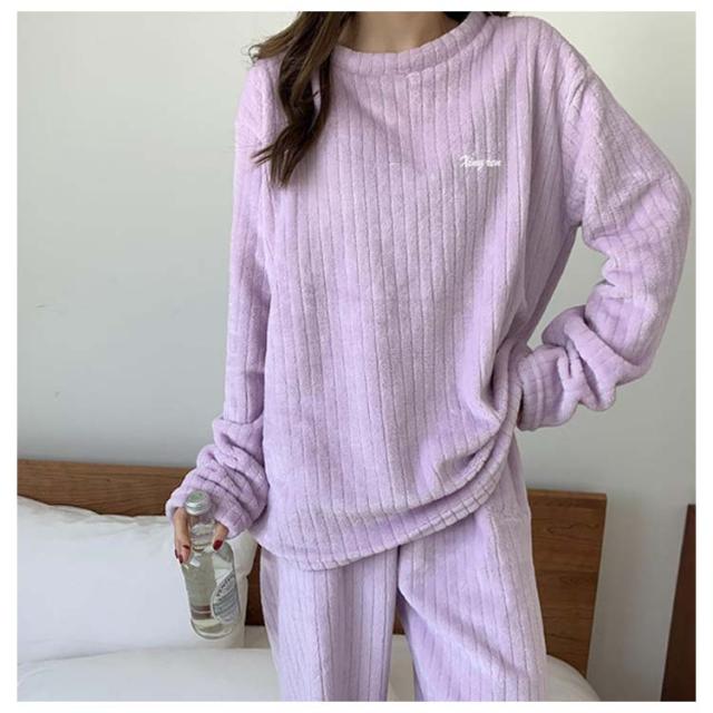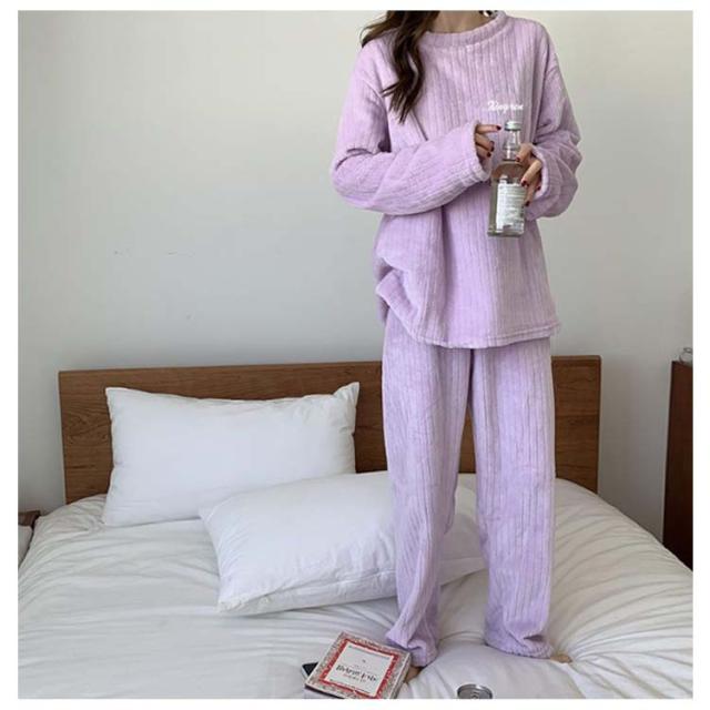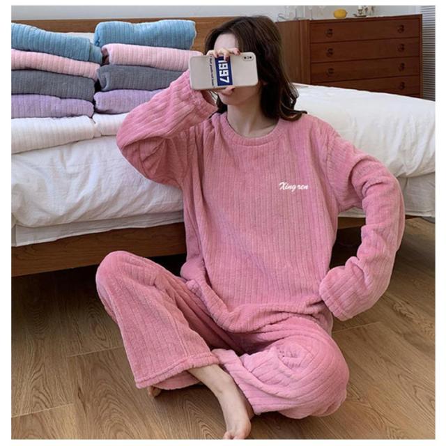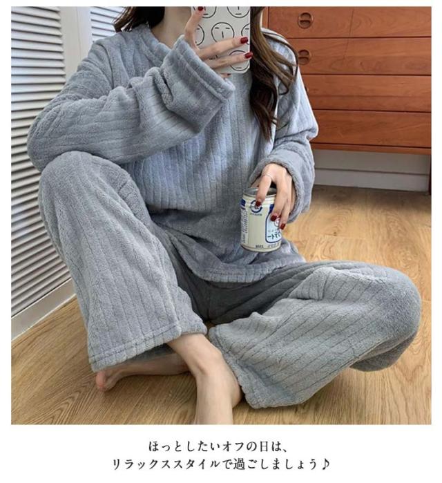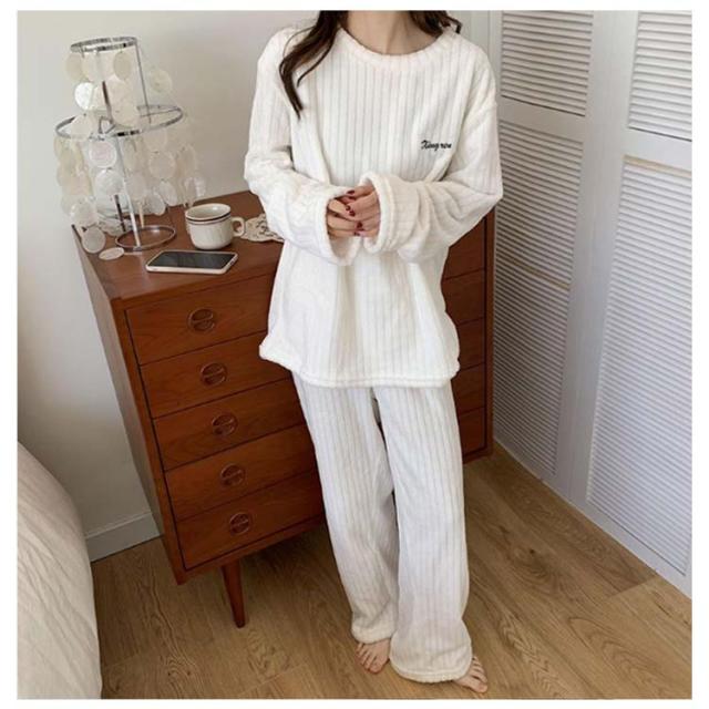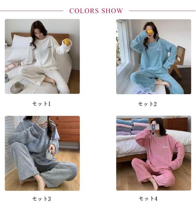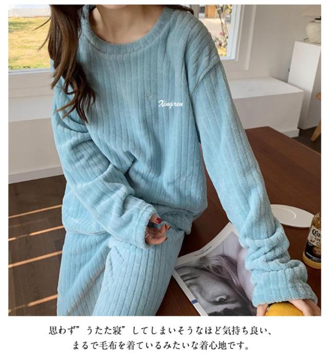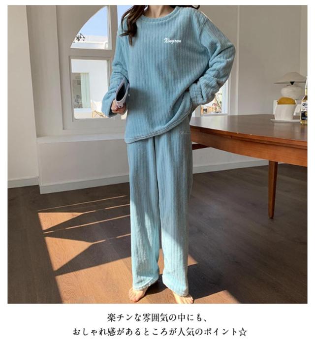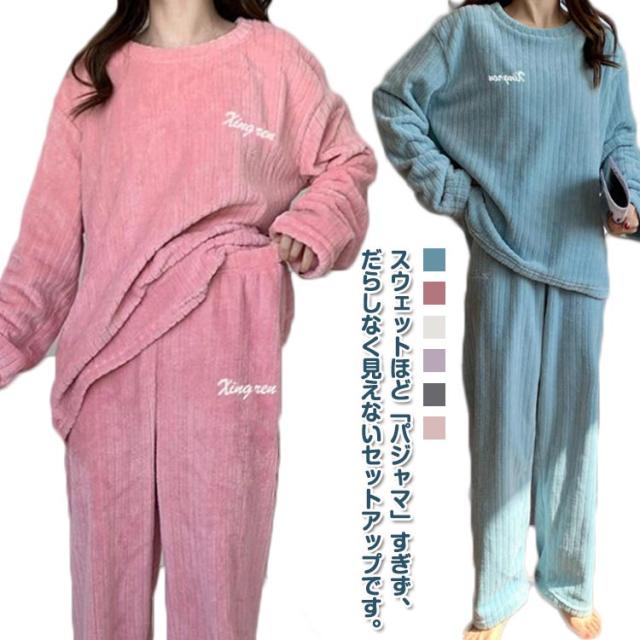 ルームウェア もこもこ パジャマ マイクロファイバー レディース 上下セット リブ 刺繍ロゴ ルームウェア 部屋着 セットアップ プルオーバー 室内着 寝巻き 秋冬 長袖 長ズボン ゆったり 寝間着 女の子 学生 着る毛布 暖かい