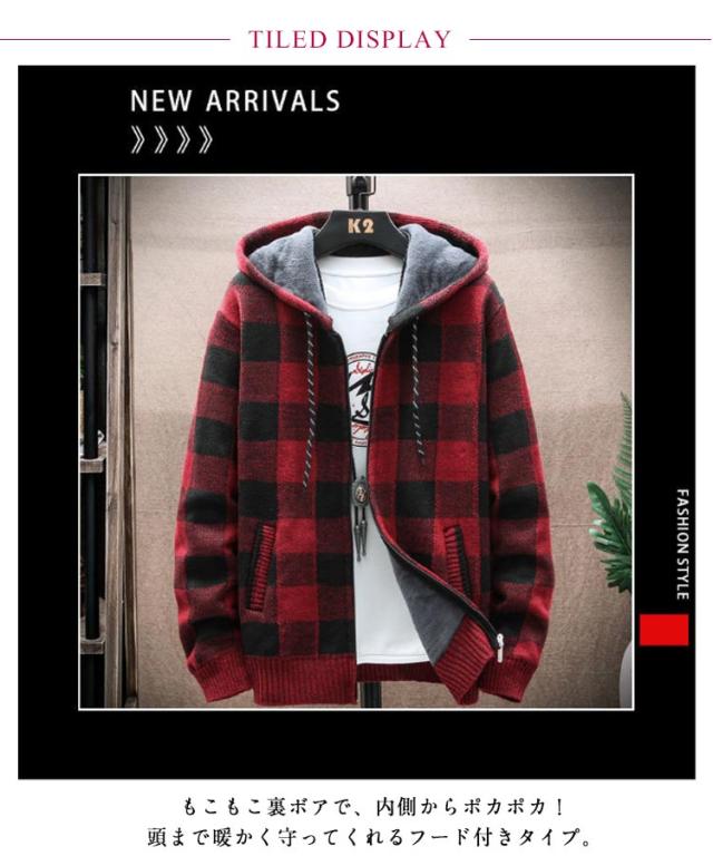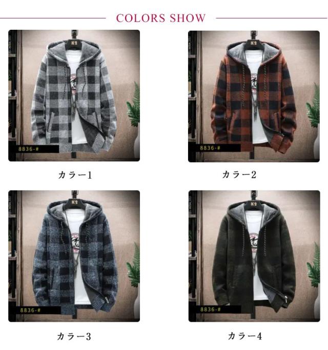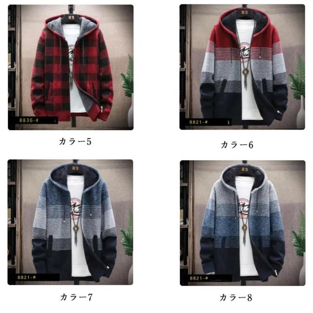 パーカー 裏起毛 ジップパーカー メンズ チェック柄 ボーダー柄 無地 裏起毛 フルジップパーカー カーディガン ニット パーカー 裏ボア コーディガン フード付き 羽織り カジュアル シンプル あったか ゆったり おしゃれ 秋冬