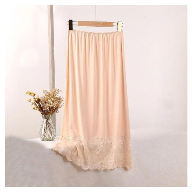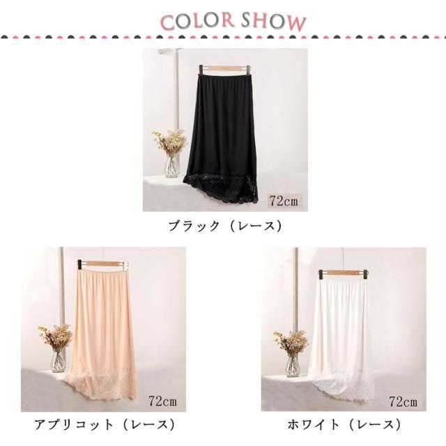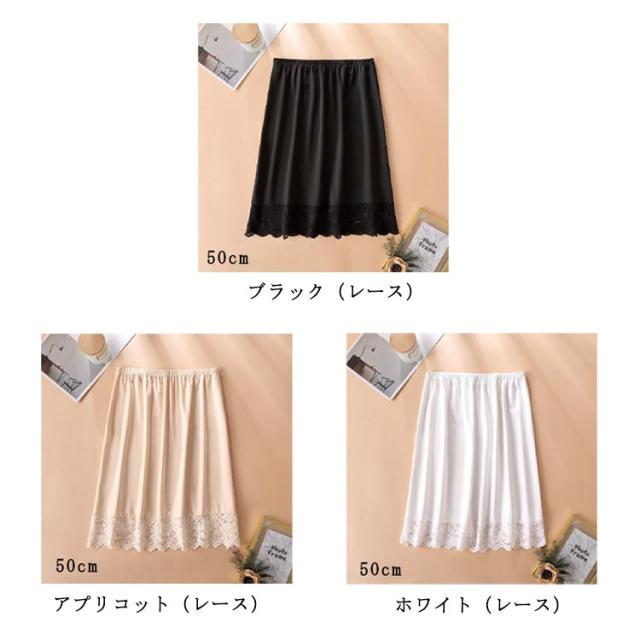 刺繍 ペチコート レース ペチ コート インナー スカート レーススカート レディース ロング丈 膝下丈 ミモレ丈 ロングスカート ウエストゴム ドレスインナー キレイめ 大人可愛い インナースカート 裾レース 重ね着 レイヤード