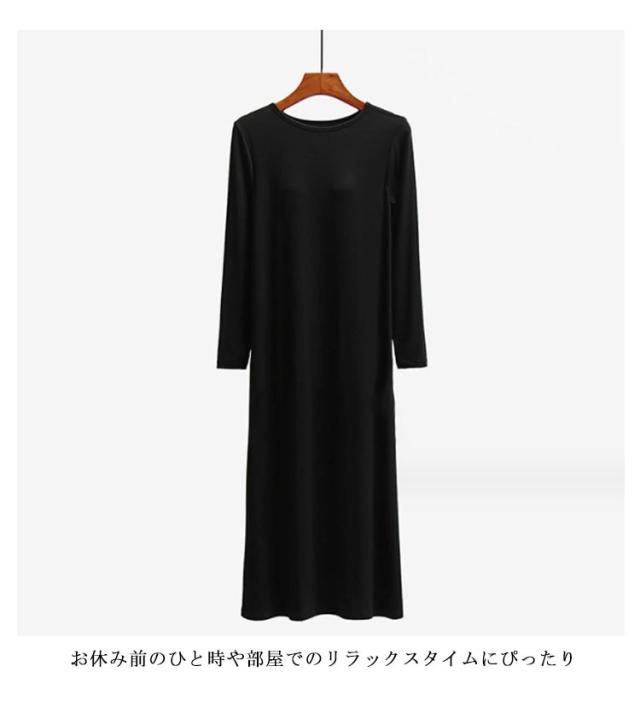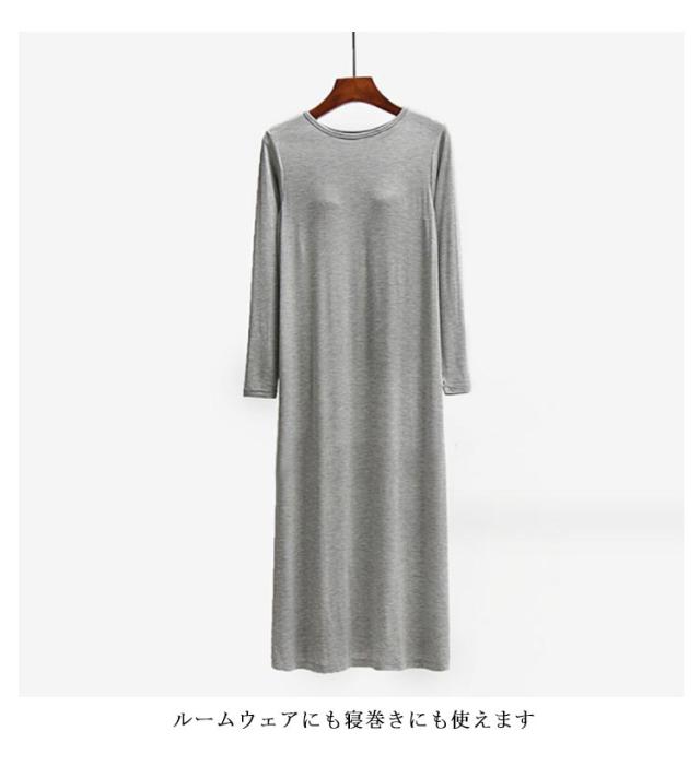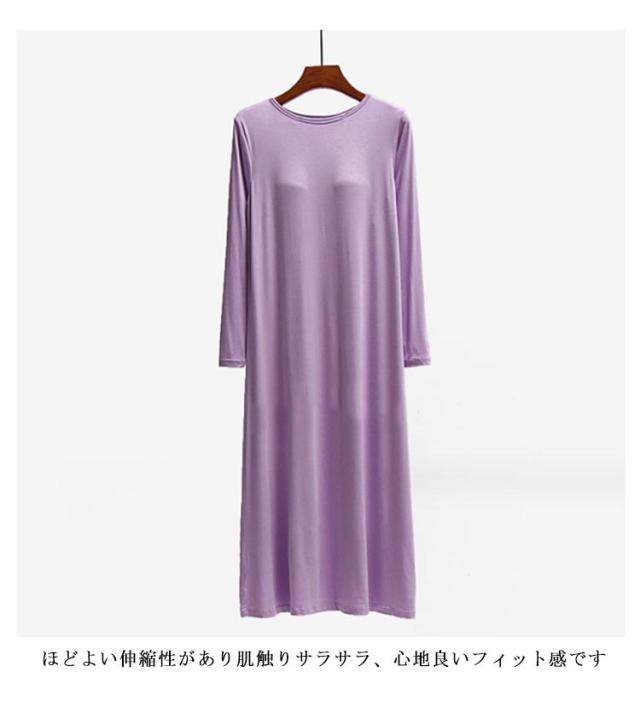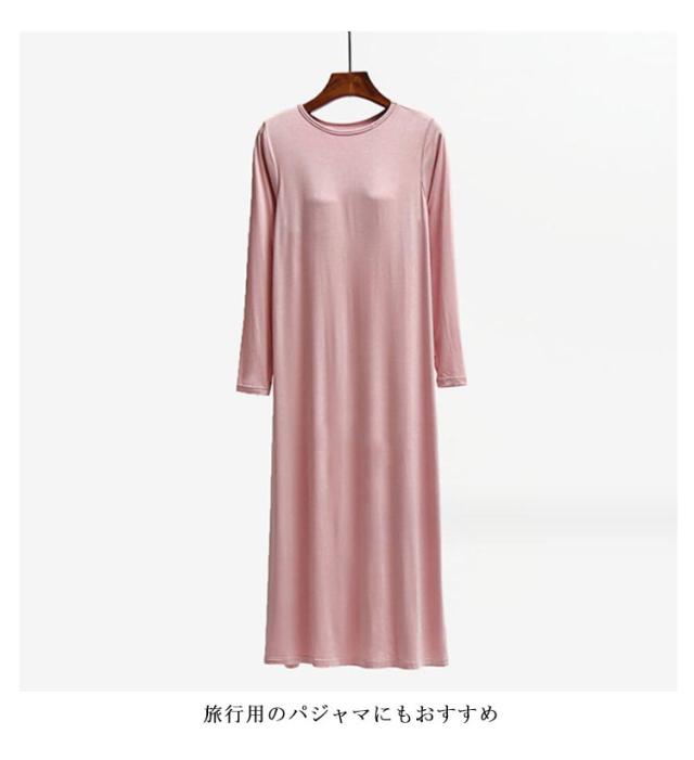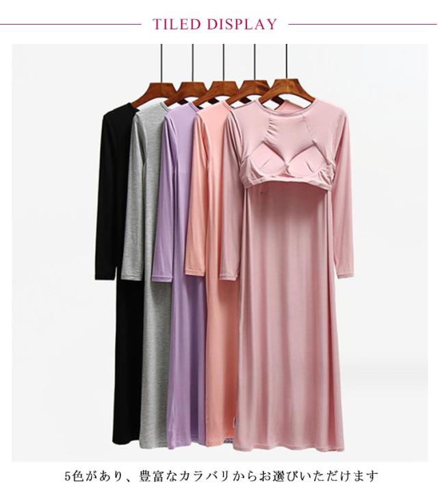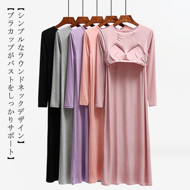 パジャマ レディース カップ付き ワンピース 全5色 七分袖 ロング丈 部屋着 リラックス ゆったり ナイトウェア ブラ付き 寝間着 ネグリジェ 春 秋 冬 無地 Uネック おうち 大きいサイズ マタニティ 寝間 ルームウェア かわいい 秋冬 送料無料