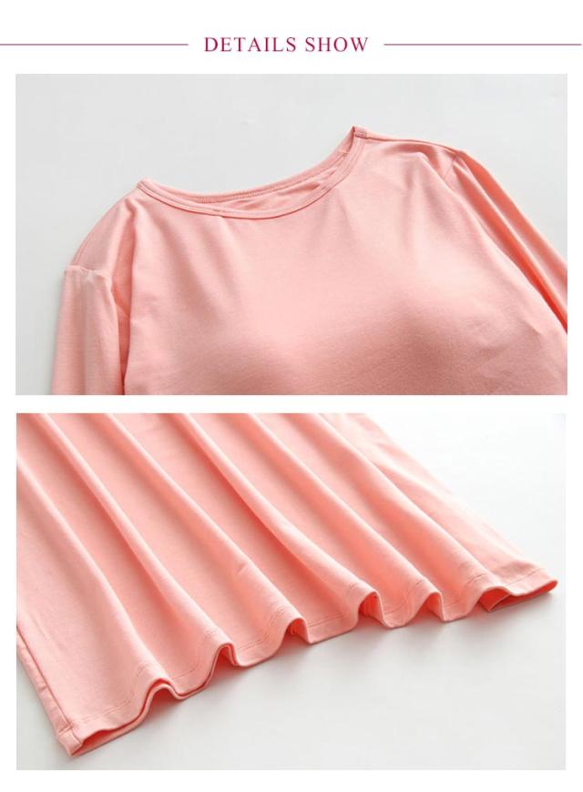 | 5色があり、豊富なカラバリからお選びいただけます ほどよい伸縮性があり肌触りサラサラ、心地良いフィット感です ルームウェアにも寝巻きにも使えます お休み前のひと時や部屋でのリラックスタイムにぴったり 旅行用のパジャマにもおすすめ 製品のディテール: 【シンプルなラウンドネックデザイン】 【ブラカップがバストをしっかりサポート】 【袖口は少しゆったりとしたデザインです】 【Aラインの裾、ルーズフィット、より快適な着用感】 | |