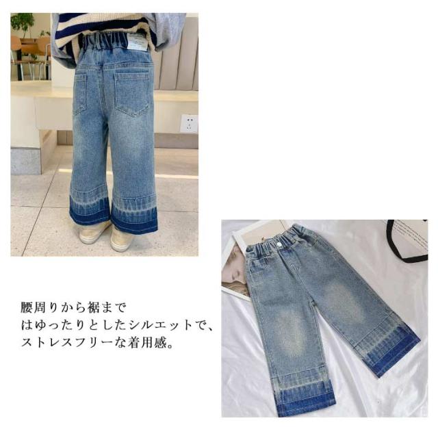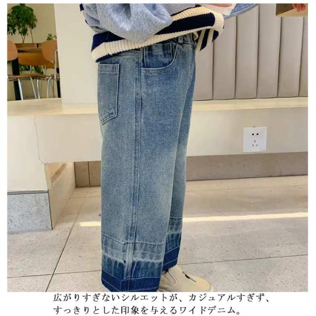 デニム デニムパンツ ワイドパンツ 女の子 キッズ ズボン ジーンズ ハイウエスト ロングパンツ ストレートパンツ 長ズボン ボトムス 女の子 ガール カジュアル ゆったり 韓国 ジュニア 子供服 子ども服 小学生 中学生 可愛い きれいめ