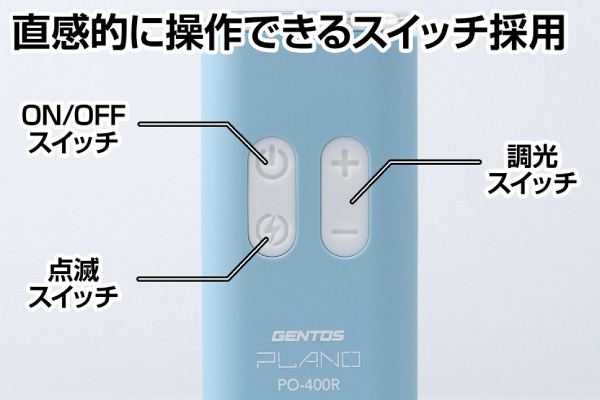 - スイッチロック(誤操作防止)機能:点灯・消灯中ともに、ON/OFFスイッチを長押しするとスイッチ操作のロック/ロック解除ができる。