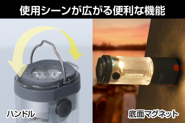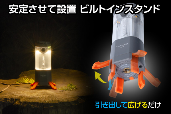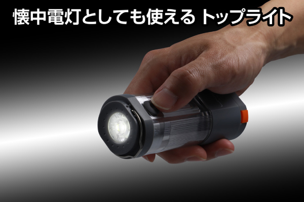 | 輝度(約) | 【トップライト】 63カンデラ(Super Ecoモード時) 257カンデラ(Ecoモード時) 1305カンデラ(Midモード時) 3020カンデラ(Highモード時) 【ランタン】2カンデラ(Super Ecoモード時) 4カンデラ(Ecoモード時) 23カンデラ(Midモード時) 44カンデラ(Highモード時) |