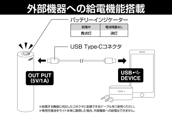 | 付属品 | USB Type-C ケーブル(50cm)、専用充電池 |