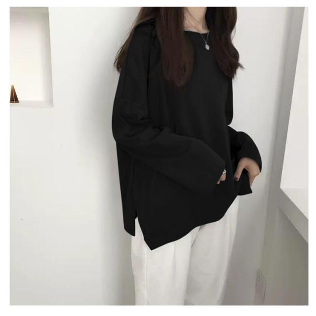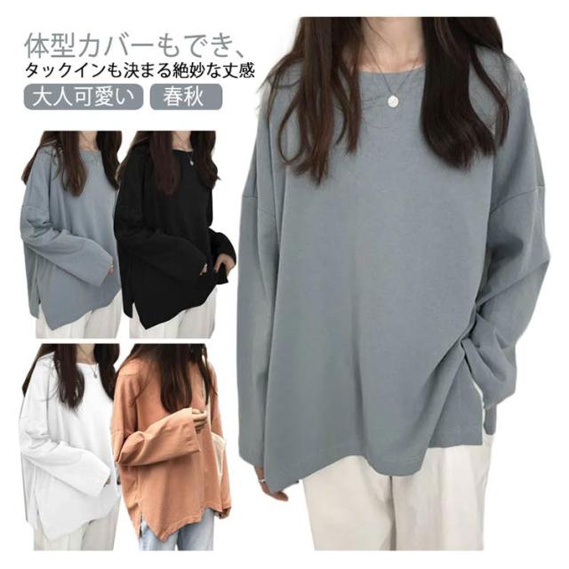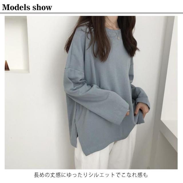 長袖 ロンT レディース オーバーシルエット くすみカラー tシャツ 春秋 ゆったり 無地 大人可愛い レイヤード 重ね着 おしゃれ ワンマイルウェア ルームウェア 部屋着 おうち時間 ストレッチ 伸縮性 体型カバー 在宅 リモート テレワーク