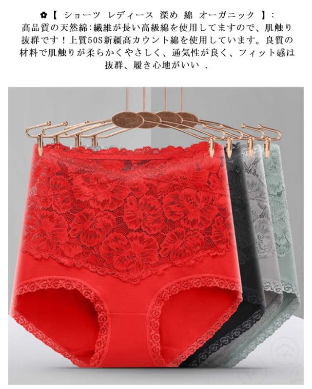 レディース 深め レース レースショーツ ショーツ 股上深め 女性 プレゼント パンツ ハイウエスト 深履き 綿 伸縮性 きれいめ 美尻効果 ストレッチ かわいい 通気性 母の日 下着 女性美形ショーツ 送料無料