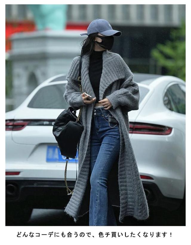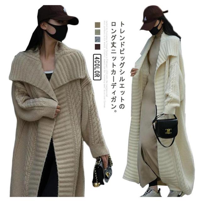 「超ロング」 カーディガン ニットカーディガン ロングカーディガン ロング アウター レディース リブ 長袖 ニット コート コーディガン 羽織り 秋冬 シンプル 体型カバー 大きいサイズ ドロップショルダー おしゃれ ゆったり 着やせ 韓国