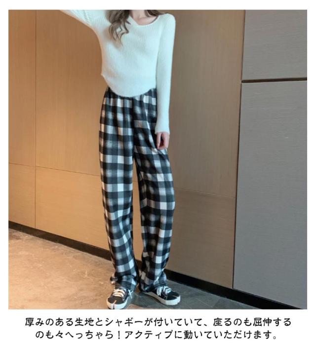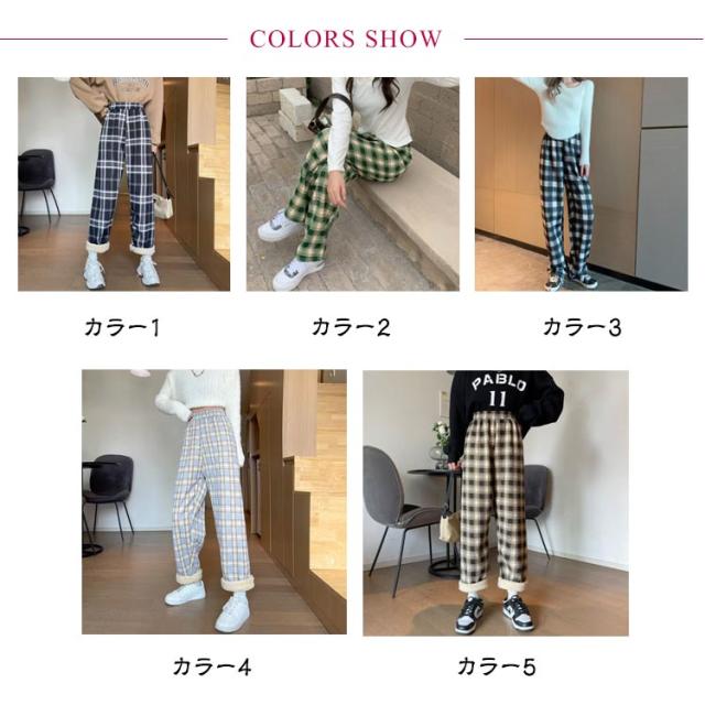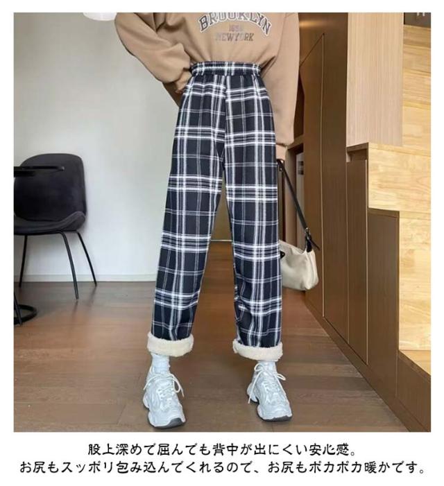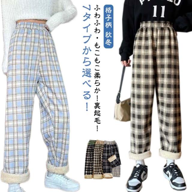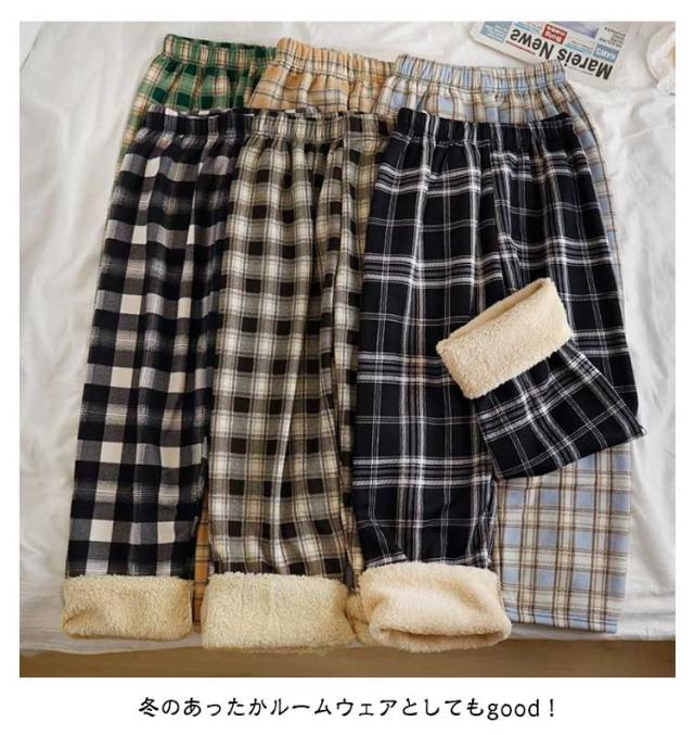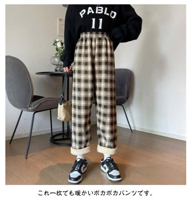 7タイプから選べる!裏起毛ガウチョパンツ チェック 格子柄 秋冬 ワイドパンツ レディース 美脚 スカーチョ カジュアル オシャレ 女性用 ボア素材 スウェット 大きいサイズ 暖かい ボトムス ズボン ロング ストレッチパンツ イージーパンツ