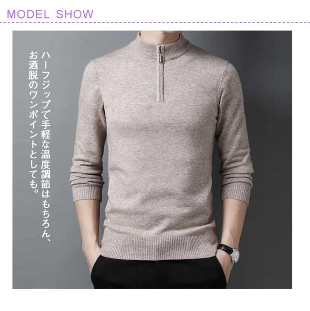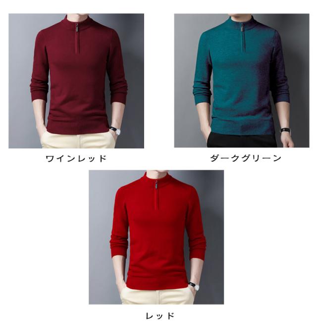 ハーフジップ ニット メンズ 秋 冬 春 ニット セーター 長袖 ビジネス ハイネック プルオーバー メンズセーター フィット ニット トップス 細身 暖かい 立ち襟 スタンドカラー おしゃれ きれいめ 暖かい カジュアル 無地 おしゃれ 秋服 冬服 送料無料