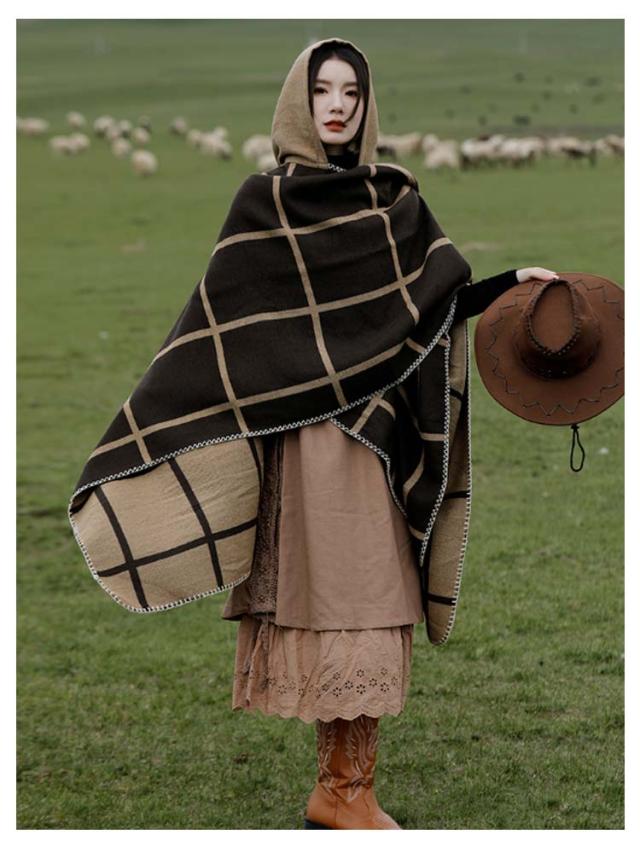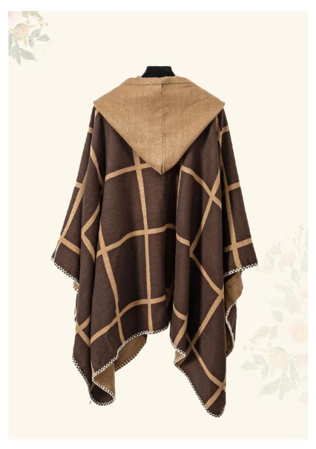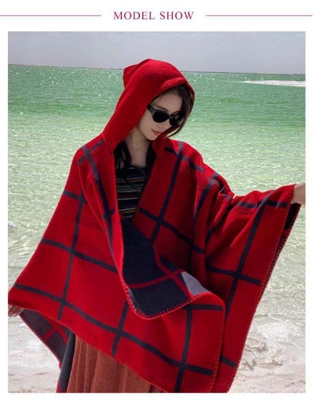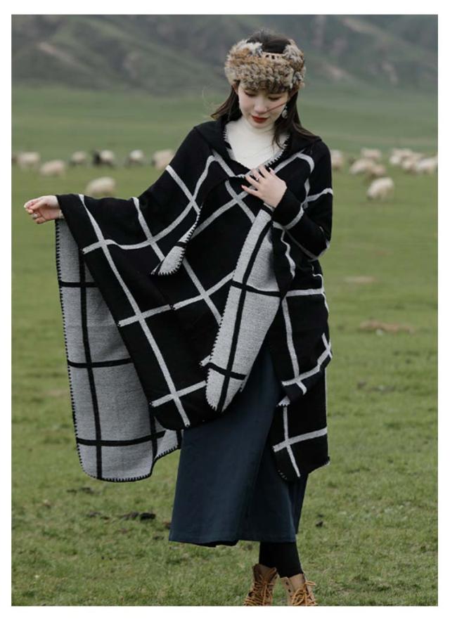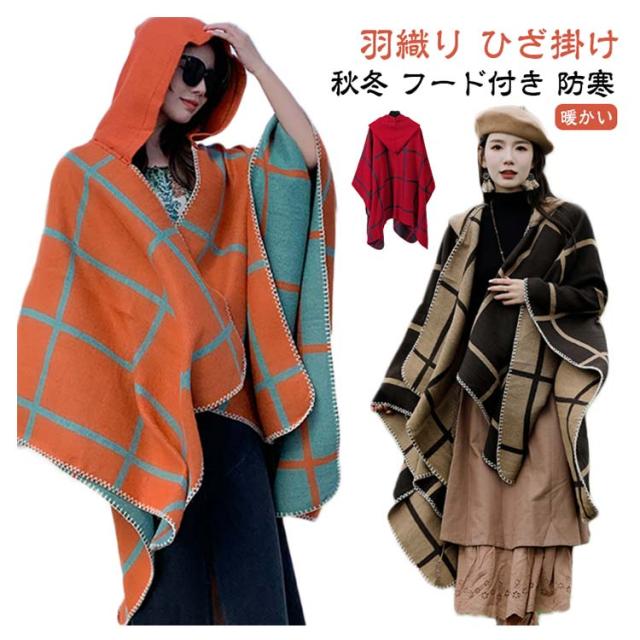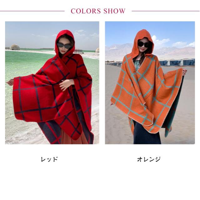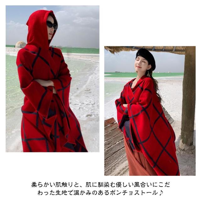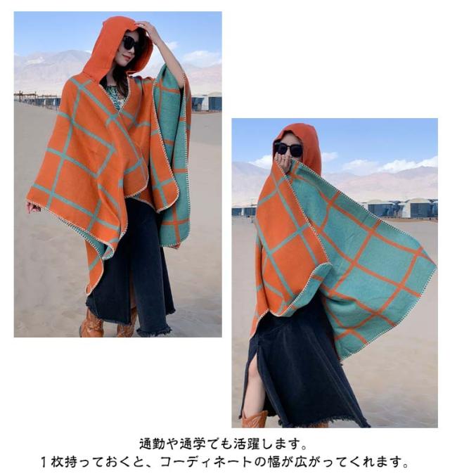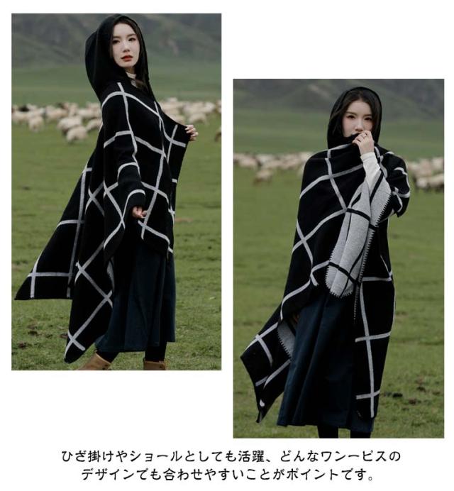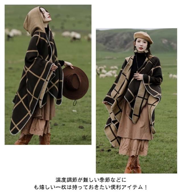 ポンチョ ストール レディース 秋冬 フード付き ボタン チェック コート マント ニット エスニック 民族 防寒 ブランケット ショール ロング 羽織り ひざ掛け 羽織ドレス ケープ オーバーサイズ カジュアル ドレープ