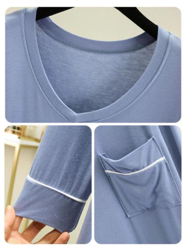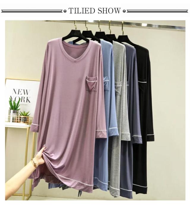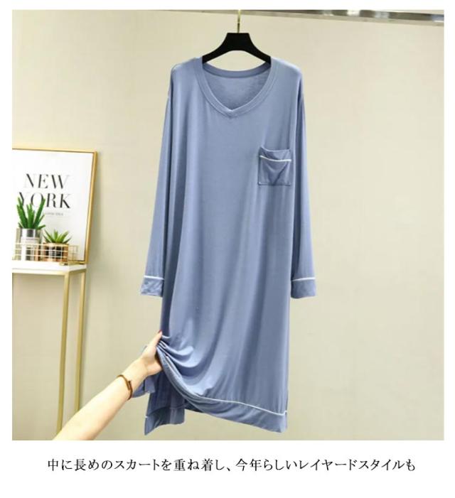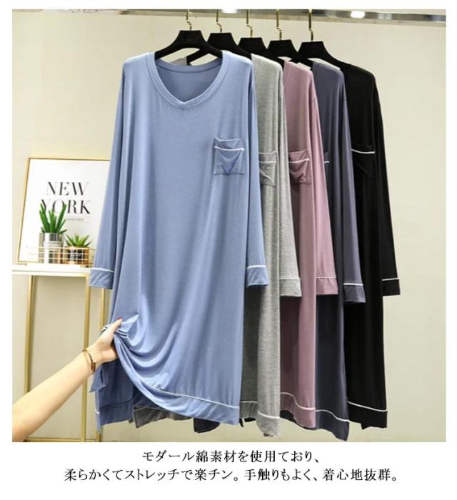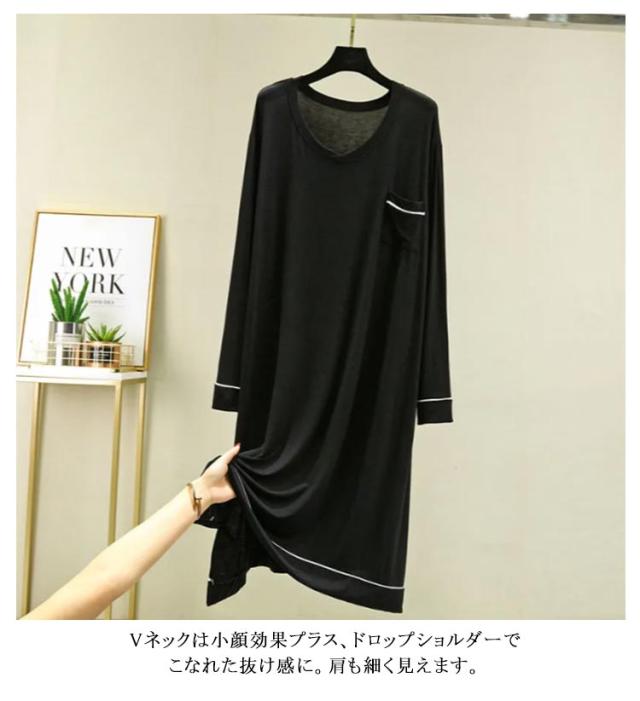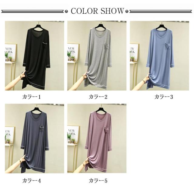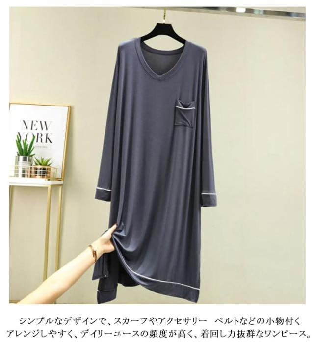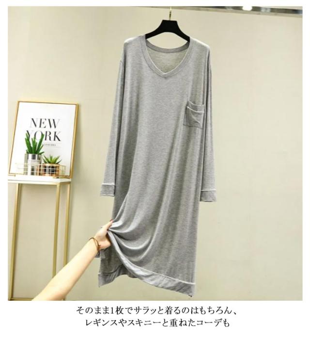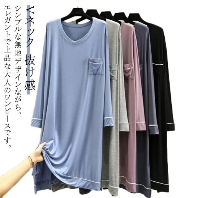 部屋着 モダール 無地 長袖 ワンピース マキシ丈ワンピ レディース Vネック シンプル 秋 Tシャツ 抜け感 細見え オーバーサイズ ビッグサイズ 大きいサイズ 長め丈 ゆるワンピ マタニティ マキシワンピ 体型カバー ルームウェア 妊婦 ママ 送料無料