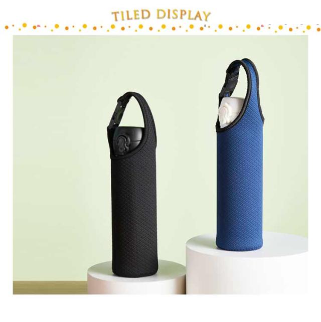 | シンプルなデザインのボトルカバー です。 バックルが付いているので、バッグに取り付けることができます。 高さ約18cm、直径約6.8cmまでのボトルや市販のペットボトルにも対応。 持ち運びしやすいように持ち手が付いています。バッグから取り出す際にも便利です。 ぴったりフィットして水筒の飛び出しを防止し、傷から守るカバーです。 保温・保冷素材を採用しているので、オールシーズン使用可能です。 | |