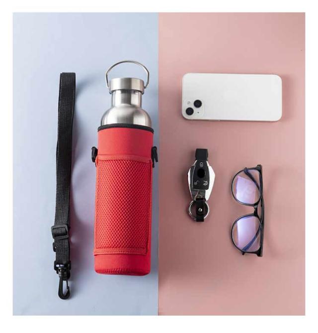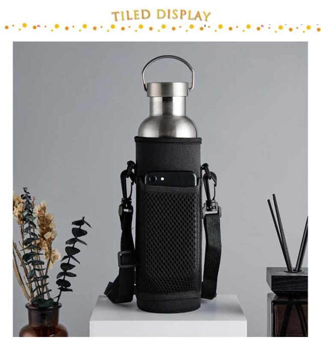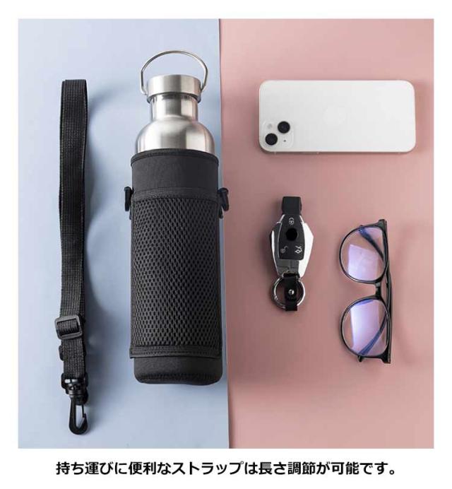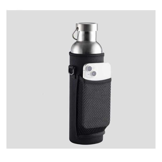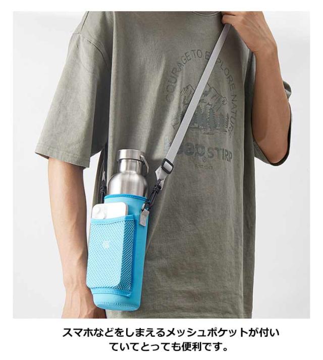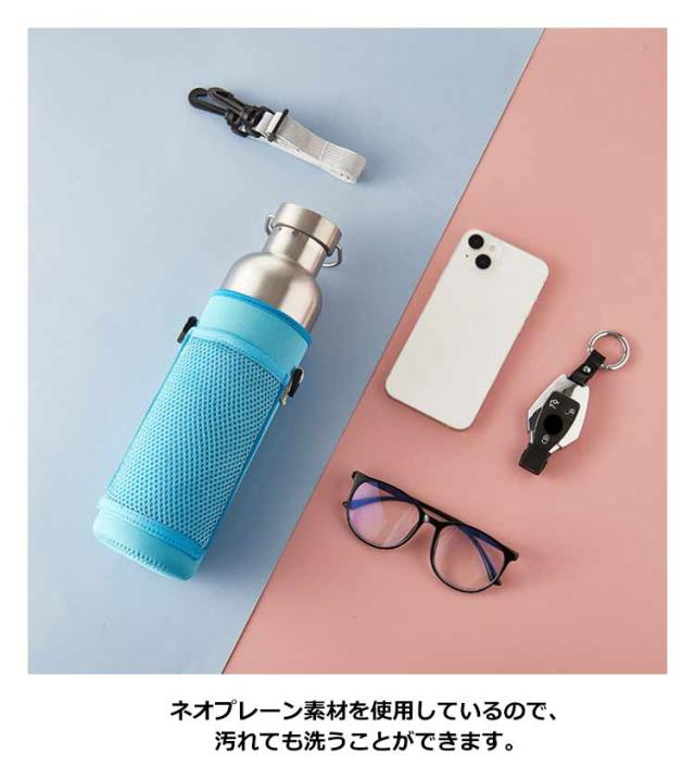 | 水筒を入れたままで、外ポケットにスマホを入れられる保温・保冷ボトルホルダー。 スマホなどをしまえるメッシュポケットが付いていてとっても便利です。 持ち運びに便利なストラップは長さ調節が可能です。ボトルの水滴を防ぎ、衝撃からも守ってくれるのでアウトドアに最適です。 ネオプレーン素材を使用しているので、汚れても洗うことができます。 水筒やタンブラーだけでなく、ペットボトルの持ち運びにも適しています。 | |