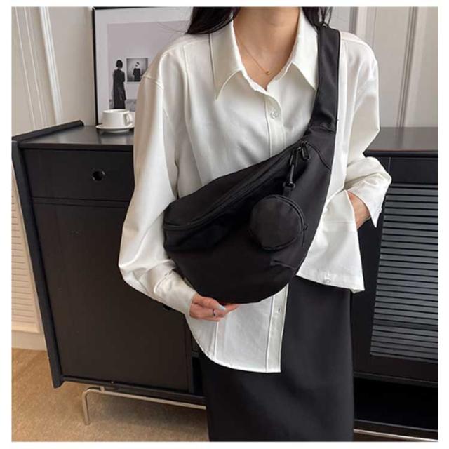 | ハーフムーン型ショルダーバッグ。 スタイリッシュなハーフムーンフォルム。 ニュアンス感のある大人キレイめカジュアルスタイルを目指し ナイロン素材で軽量に仕上げました。 開口部のファスナーは大きく開く仕様で物の出し入れもスムーズ 長さ調節可能★ | |