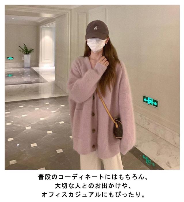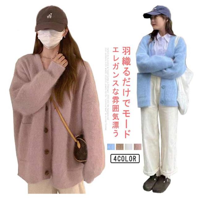 カーディガン レディース ニット ニットカーディガン ニットセーター コーディガン アウター トップス ふわふわ モコモコ ポケット付き 羽織り 秋冬 長袖 オーバーサイズ 秋服 冬服 ゆったり 防寒 厚手 おしゃれ オフィス カジュアル 重ね着 通勤 通学 着やせ