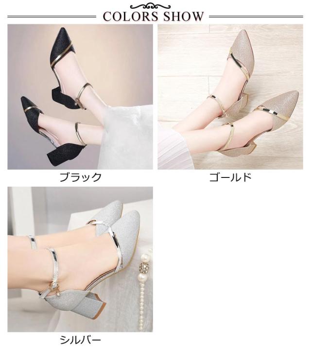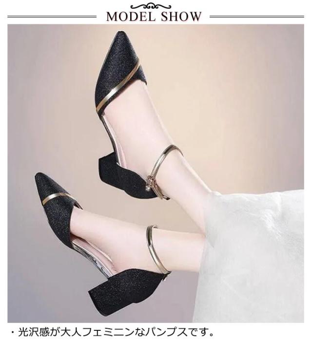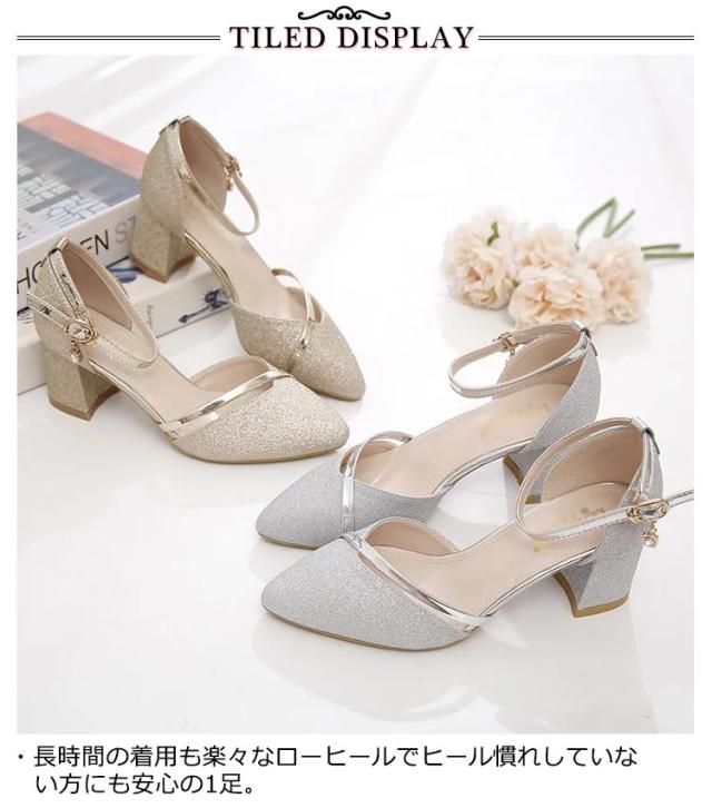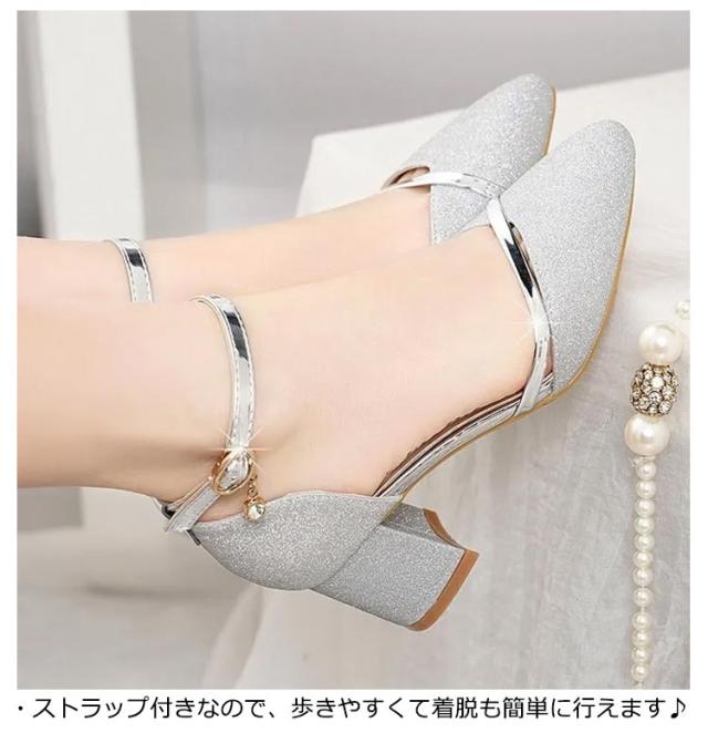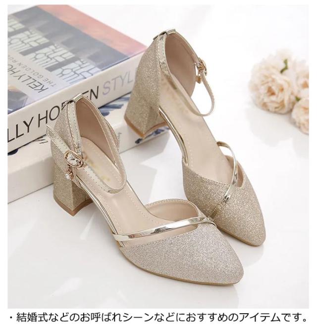 パンプス 結婚式 ストラップ 痛くない ブライダルシューズ 5cmヒール ラメ キラキラ デート 靴 太ヒール アンクルストラップ ローヒール ポインテッドトゥ 疲れない 歩きやすい パーティ 二次会 ワンピース ドレス
