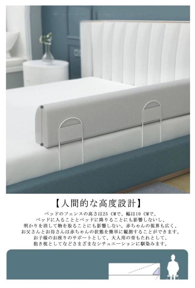 ベッドガード 転落防止 赤ちゃん 子ども クッション ハイタイプ 高さ25cm 長さ150cm クッションベッドガード 自由変形 ベッドフェンス 高密度スポンジ マルチタイプ 内蔵固定 洗濯可能 取り外し可能 洗える 100/150/180/200cm 子供 添い寝 出産祝い ベビーガード ベッド