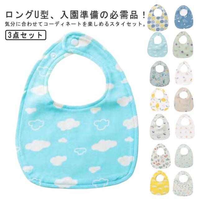 防水 スタイ U型 3枚セット ベビー かわいい 男の子 女の子 お食事エプロン スタイセット 赤ちゃん よだれかけ 出産祝い ギフト 防水スタイ セット 入園準備 保育園 幼稚園