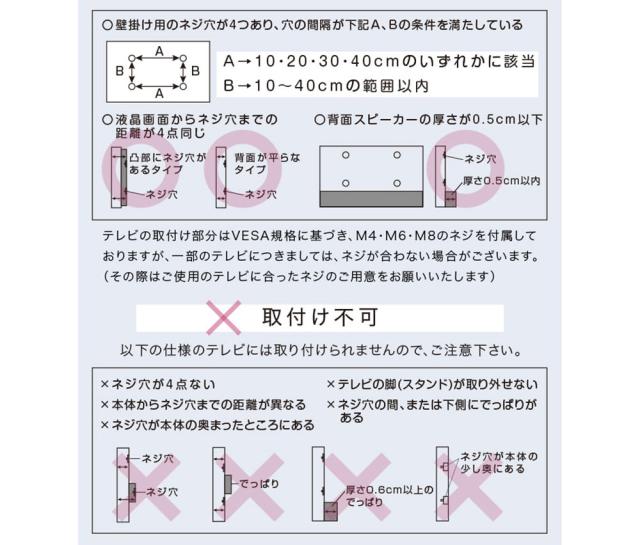 取り付け可能サイズ:32~65型