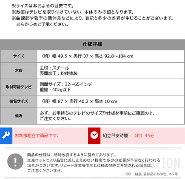 耐荷重:40kg(テレビの重量)