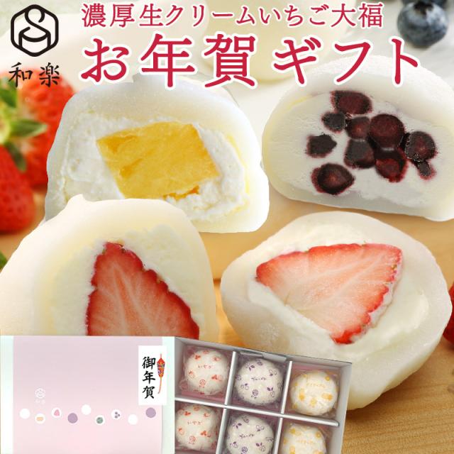 お年賀 生クリーム大福 アソート 6個入 送料無料 プレゼント フルーツ大福 アイス 和楽