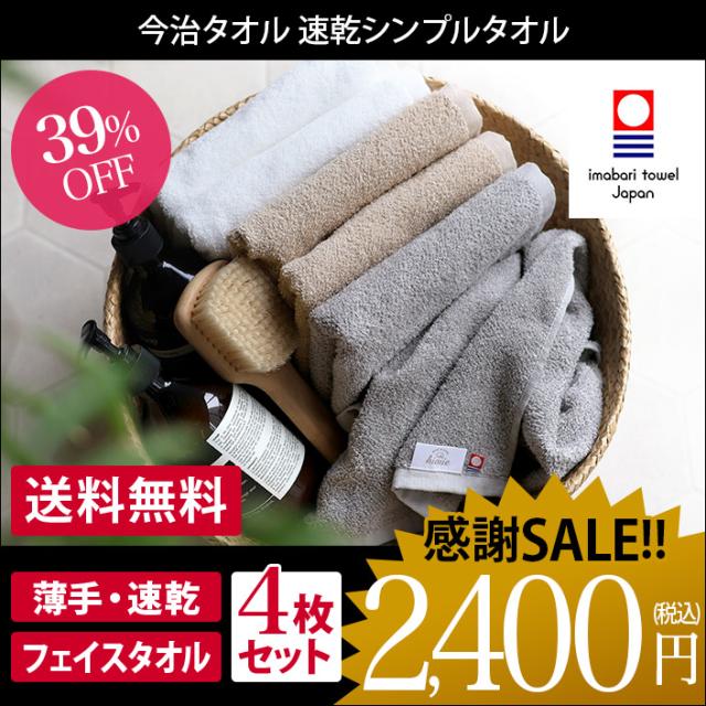 今治タオル フェイスタオル 速乾シンプルタオル 4枚セット 約34×80cm タオル 薄手 吸水 速乾 ギフト まとめ買い 日本製 送料無料