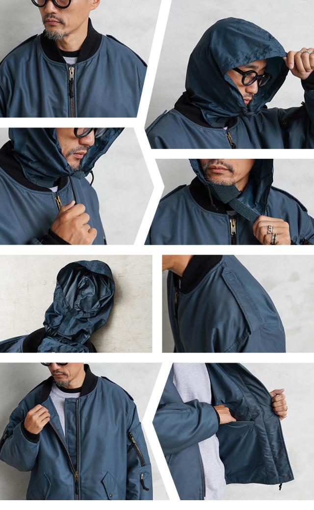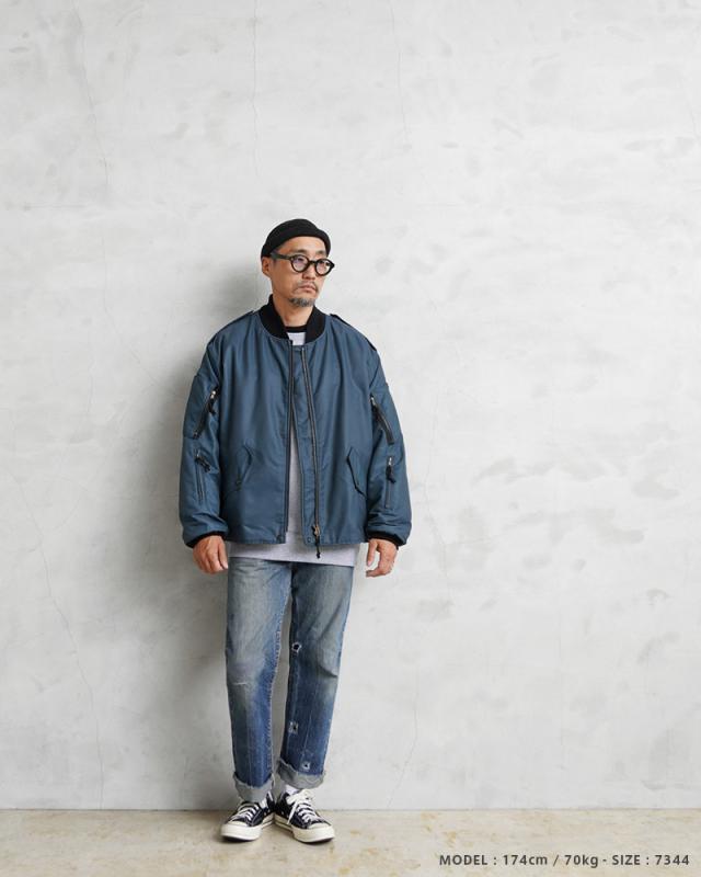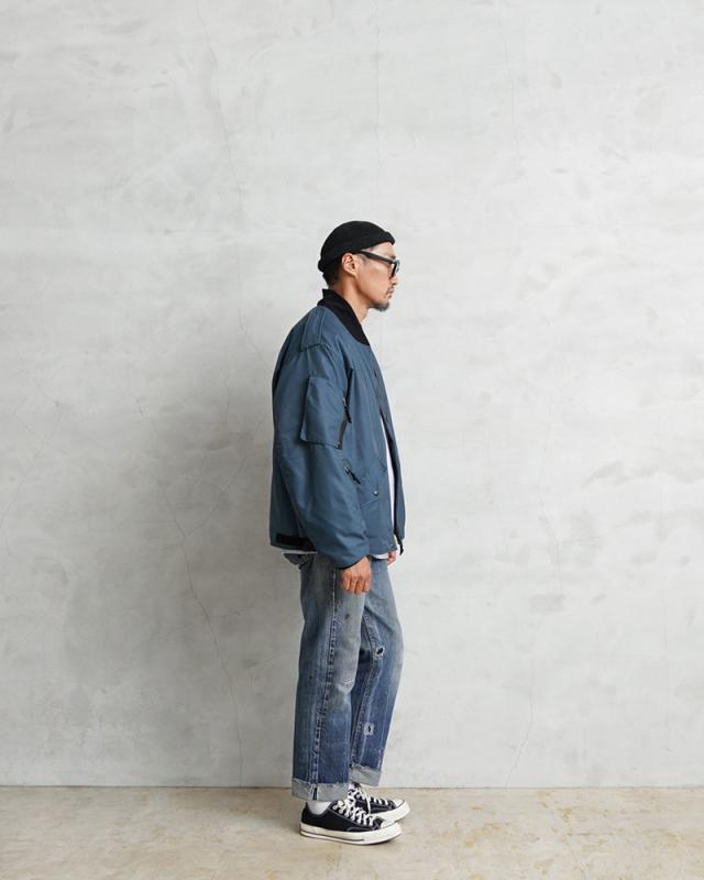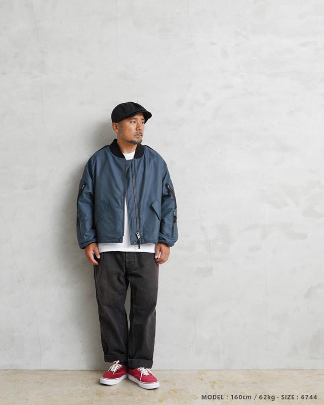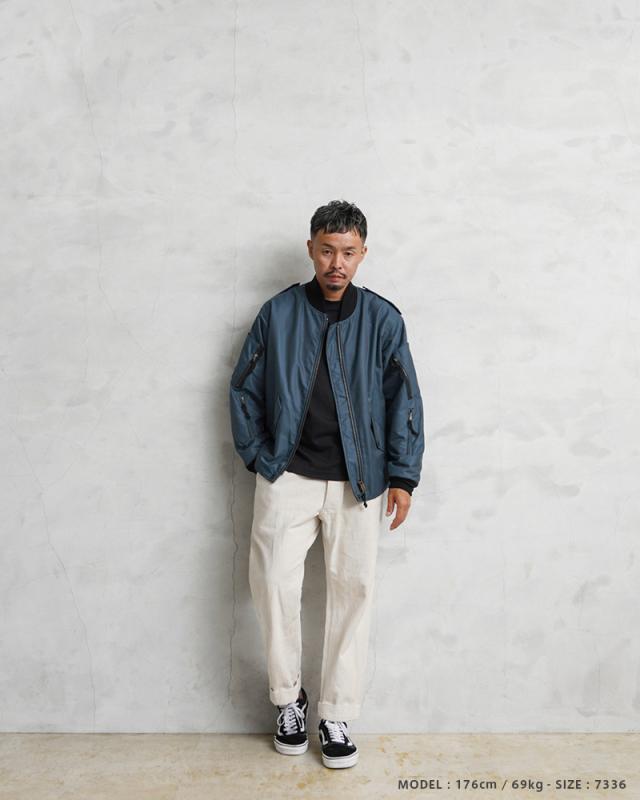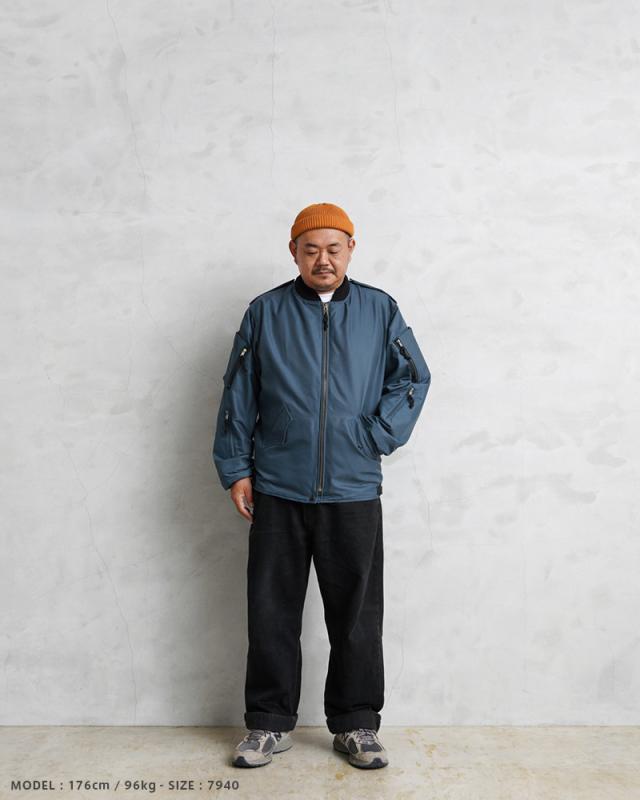 | 商品説明 | 実物 新品 デッドストック カナダ軍 ROYAL CANADIAN AIR FORCE フライトジャケット TYPEIIIのご紹介です。 制式名称:JACKET FLYERS INT.III カナダ空軍ロイヤル カナディアン エアフォース(RCAF)で1990年代に採用されていたフライトジャケットで、カナダ空軍の「CANADIAN AIR FORCE BLUE」が上品さも感じさせる色目のフライヤーズジャケットが入荷しました。 米軍のL-2、L-2A、L-2Bなどをサンプリングされたようなデザインですが、カナダ軍独自のアレンジが加えられており、フライトジャケットであればよく目にする袖にデザインされたユーティリティポケットは、上腕部分に立体的なデザインのポケットが2箇所、前腕部分にもファスナー開閉のポケット2箇所が両腕に備わったデザイン。 フロントのフラップポケットとインナーポケットも合わせると、全部で8ポケットという素晴らしい収納力で、袖のポケットの独創的なディテールがデザイン性を高めています。後ろの襟元にはフードが収納されています。 裾にはリブの付いていないデザインなので、一般的なフライトジャケットよりもファッションに取り入れやすく、ストンと落ちるボックスシルエットに仕上がっています。フィット感を高めたい場合は、裾のサイドにベルクロアジャスター付きで調節可能、その仕様もデザインに一役買っています。 コットンとナイロンの混紡生地のマットな質感も使いやすく、インターミディエイトゾーン用の中綿の入らないタイプになりますが、表地と裏地の間にも芯地と呼ばれるコットン系の布地が入っていますので防風性もあり、日本の気候であれば夏以外の3シーズンでの着用に適した仕様のフライトジャケットです。 裏地には滑りの良いナイロン生地が袖先までしっかりと施された総裏地仕立てなので、レイヤードもゴワつかずスムーズな着脱が可能です。比較的ショートタイプのジャケットになりますので、少しインナーを見せるように着ていただくとバランス良く、スマートな着こなしができますね! 現代の既製品にはないようなカラーリングとカナダ軍オリジナルのデザインが素晴らしい1枚。様々なボトムスとも相性が良く、品のあるカナディアンミリタリーの名作をお楽しみいただけます。 カナダ軍のアイテムは放出自体が少ない印象ですが、カナダ空軍はさらに球数の少ない希少なアイテムです! | ||||||||||||||||||||||||||||||||||||||||||||||||||||||||||||