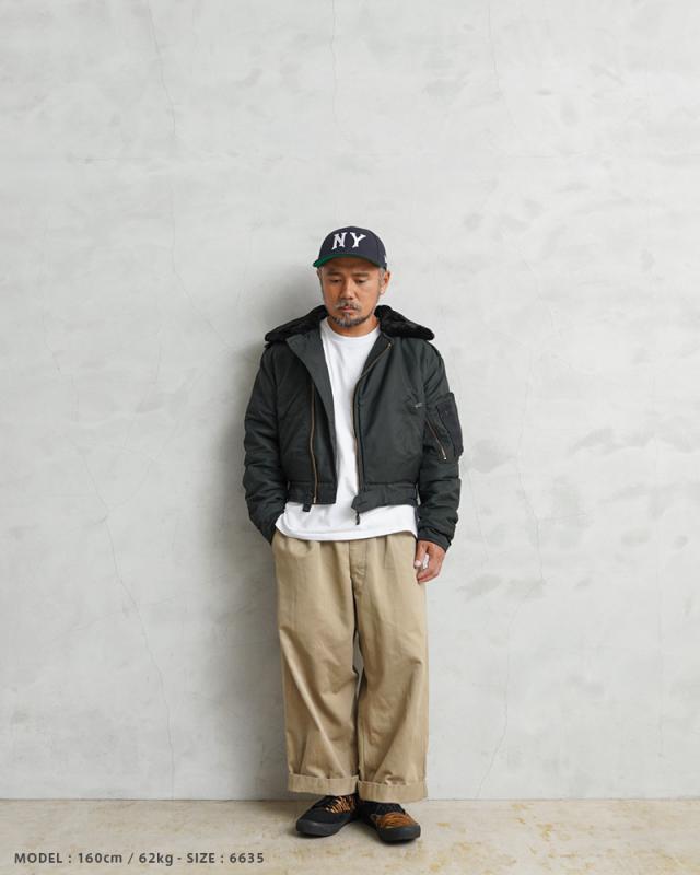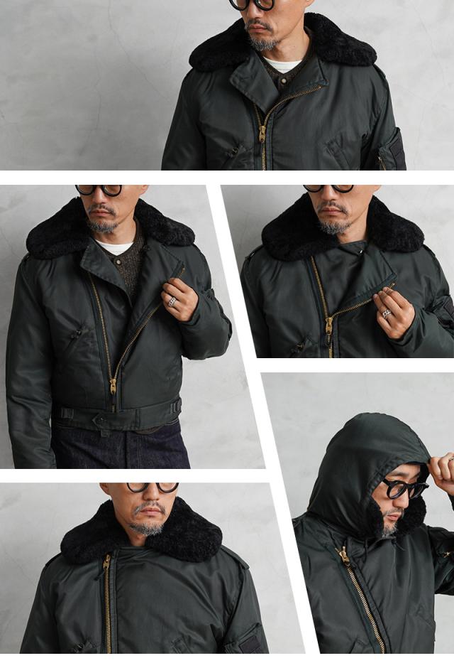 | 商品説明 | 実物 USED カナダ軍 ROYAL CANADIAN AIR FORCE リアルムートン アビエイター ジャケット TYPE IV CAF GREENのご紹介です。 制式名称:JACKET,FLYERS,VESTE D’AVIATEUR カナダ空軍ロイヤル カナディアン エアフォース(RCAF)で1970年代に採用されたアイテムが入荷しました! 1970〜80年代の様々な年代が入荷しており、パイロットが着用するために開発された防寒性の高い通称ボマージャケットと呼ばれる大きな襟が特徴のフライトジャケットで、80年代まで使用された「CAF GREEN」という深いダークグリーンが特徴的な色目のアビエイタージャケットです! 丸みのあるボア襟の素材にはリアルムートンが贅沢に使用されており、背面上部のファスナーを開けると襟の内部にドローコード付きのフードが収納されています。ダブルライダースのようにあえて中心からずらしたファスナーが斜めに走ったデザインで、ウインドフラップ付きなので風の侵入しにくい仕様になっています。 ナイロン、コットン50/50の絶妙な質感のシェルに、シェルとライニングの間に入る防寒性や保温性を高める目的のインターライニングには100%ウールが使用されています。袖の内側にはリブ素材のインナーカフスが備わっていますので風の侵入を防ぎます。ヘビーゾーンでの仕様を目的に製造された防寒性に優れたジャケットです。 裾にはリブの付いていないデザインなので、一般的なフライトジャケットよりもファッションに取り入れやすく、ショート丈のジャケットで、脚長効果も期待できます。フィット感を高めたい場合は、裾のサイドにベルクロアジャスター付きで調節可能、その仕様もデザインに一役買っています。 袖にデザインされたユーティリティポケットはマチ付きの立体感のあるディテール、フロントポケットはファスナー開閉のポケットが備わっています。インナーポケットも内側の左右に設けられていますのでジャケットだけでも十分な収納を確保できます。 現代の既製品にはなかなかないようなカラーリングとカナダ軍オリジナルのデザインが素晴らしい1枚。様々なボトムスとも相性が良く、品のあるカナディアンミリタリーの名作をお楽しみいただけます。 カナダ軍のアイテムは放出自体が少ない印象ですが、カナダ空軍はさらに少なく、滅多にお目にかかれない入手困難な希少なネクストヴィンテージアイテムです! | |||||||||||||||||||||||||||||||||||||||||||||||||||||||
