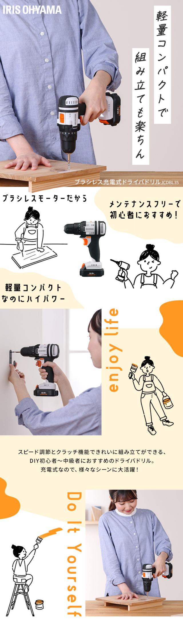 充電式ドライバドリル JCDBL35 ドライバドリル 充電式 電動 ドライバードリル ドリルドライバー 穴あけ バッテリー付き ビットセット 軽量 コードレス ブラシレスモーター DIY 電動工具 組立 家具 アイリスオーヤマ 送料無料