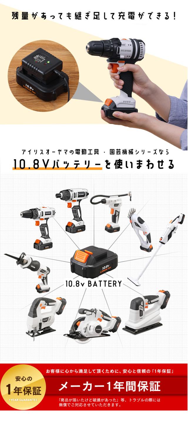 充電式リチウムイオン電池、ACアダプター・充電器、ビットセット(10種)