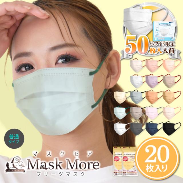 マスク 不織布 プリーツマスク バイカラー 不織布マスク プリーツ 血色マスク カラーマスク 20枚入り 50枚入り マスクモア おしゃれ