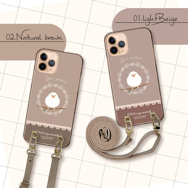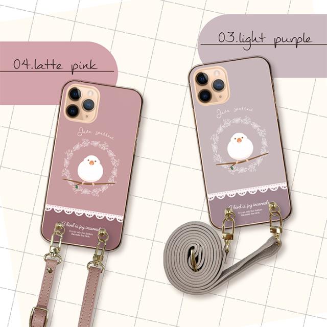 スマホケース ショルダー 全機種対応 携帯ケース スマホショルダー 首掛け 肩掛け 可愛い 文鳥 白文鳥 スマホカバー