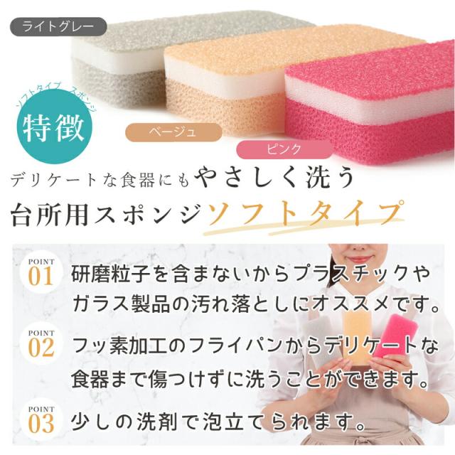 ソフトタイプ ダスキン 台所用スポンジ抗菌タイプ3色セットソフトタイプ