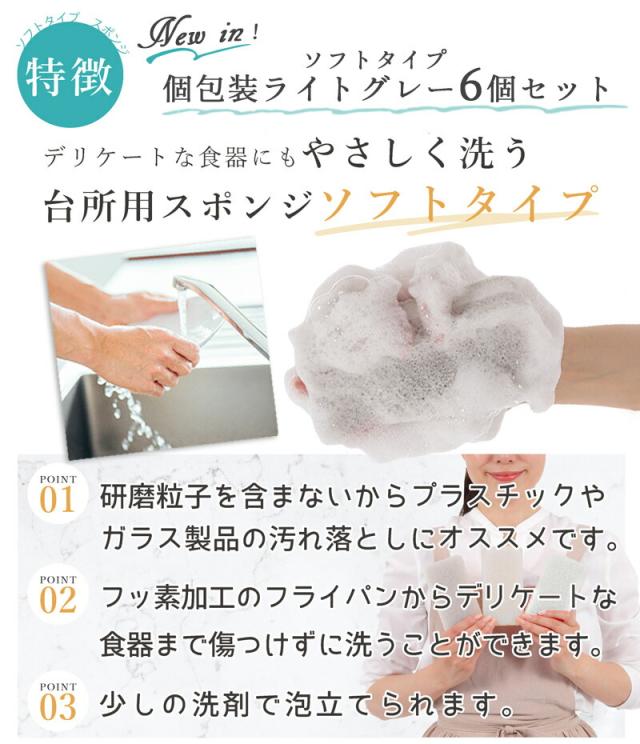 送料無料ダスキン 台所用スポンジ抗菌タイプ ライトグレーカラー(ソフトタイプ) 6個セット DUSKIN キッチンスポンジ 抗菌 台所用スポンジ 食器用スポンジ スポンジ 可愛い ダスキンスポンジ 食器用 モノトーン グレー 白 おしゃれ 送料無料