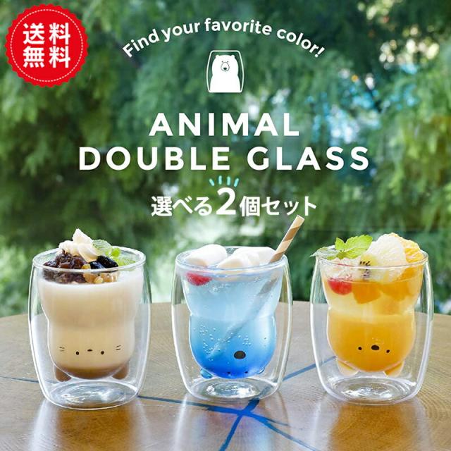 耐熱アニマルダブルグラス 選べる2個セット 送料無料