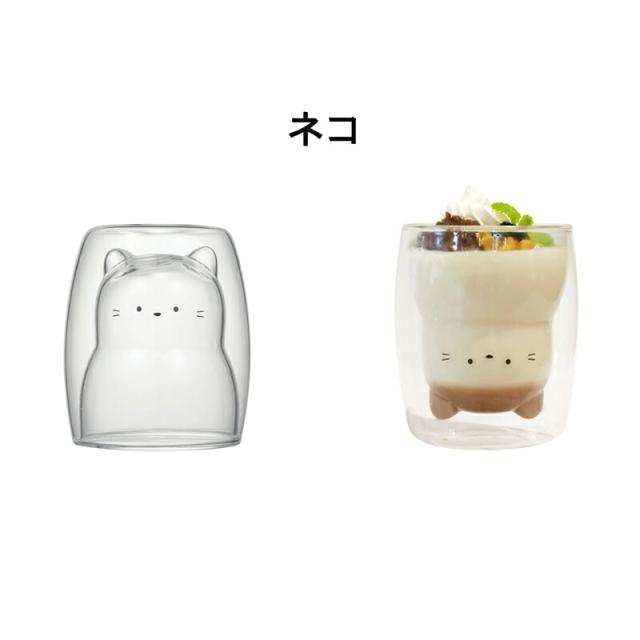 送料無料耐熱アニマルダブルグラス 選べる2個セット 送料無料 ダブルウォールグラス 二重グラス インスタ 映え グラス おしゃれ かわいい 可愛い パフェ タンブラー コップ 子供 こども 電子レンジ OK 結露しにくい 二重構造 おうちカフェ