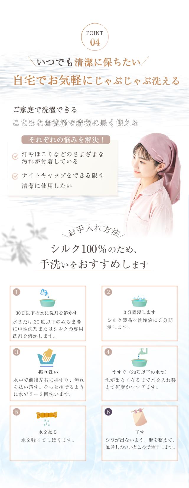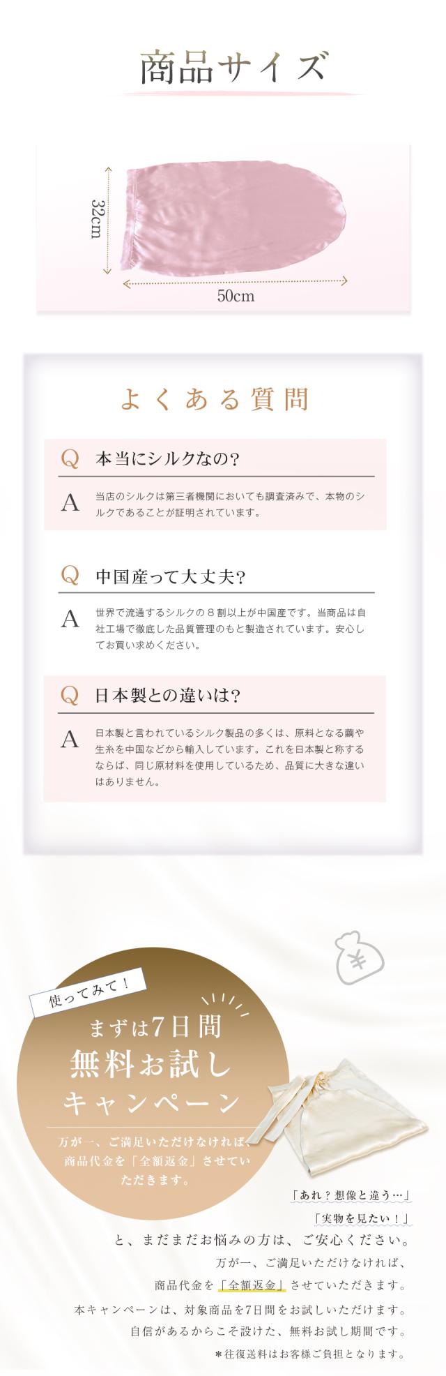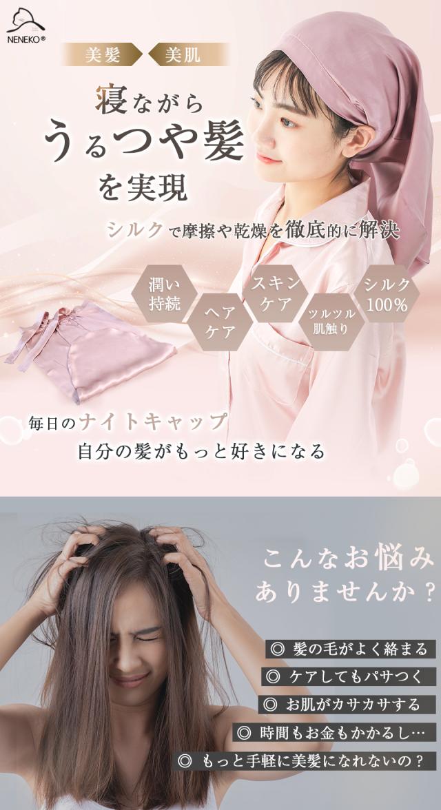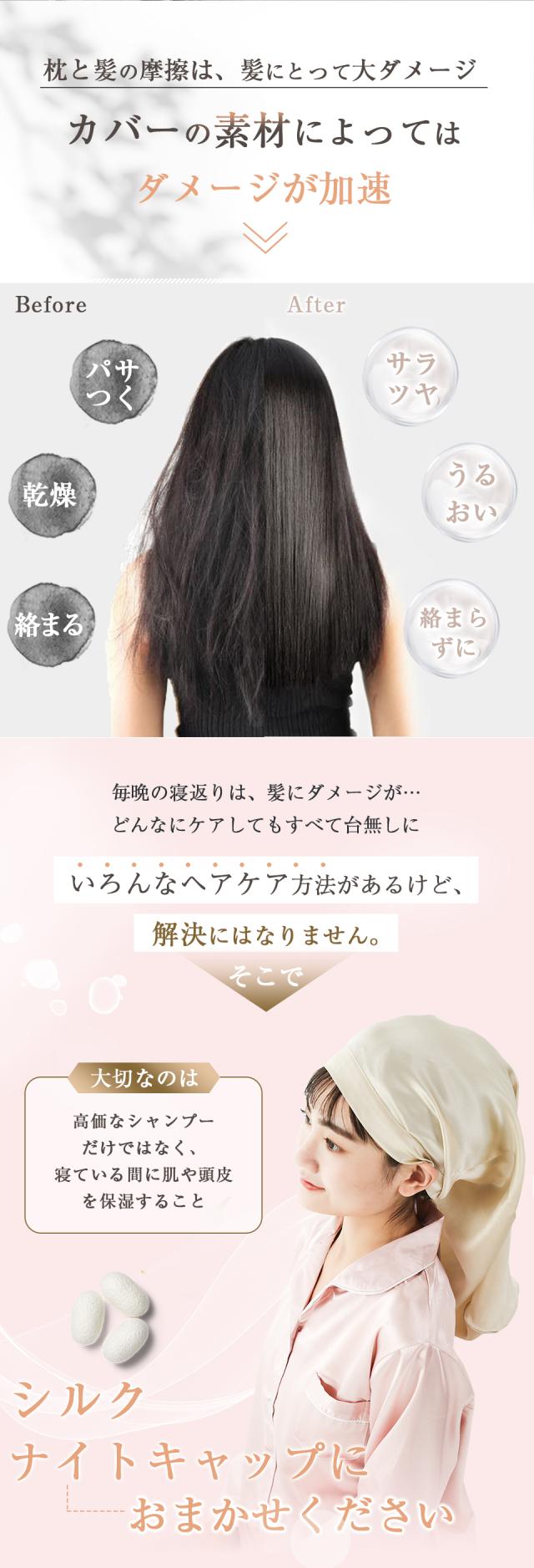 - 髪がパサついていて、ナイトキャップを探していたのですが、手頃な価格?ロングヘア対応で、とても満足しています!何となく朝、髪が落ち着いている感じがします。ただ袋に髪の毛を入れるのに手間取ってしまいます(´?-?`)
