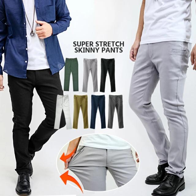 【閉店セール】スーパーストレッチ スキニーパンツ メンズ 細身 18841 18861スリム スマホポケット 無地 グレンチェック ウェストゴム 部屋着 ルームウェア ロングパンツ ブラック グレー ベージュ ネイビー M L LL 3Lサイズ 大人 美ライン
