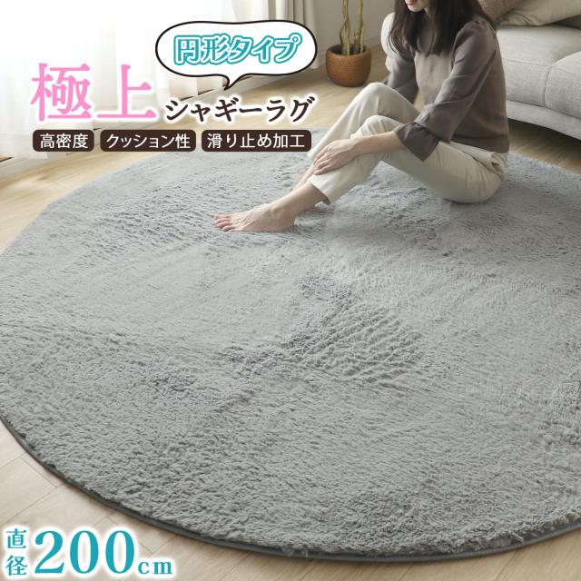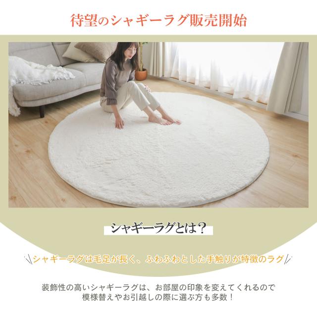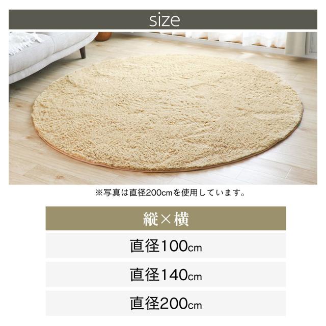 ふわふわ シャギーラグ 直径200cm 長毛 毛足25mm ラグ ラグマット 滑り止め付 西海岸 絨毯 マット ラグカーペット 北欧 カーペット おしゃれ ラグ 秋 冬 ホットカーペット対応 リビング おしゃれ ラビットファー