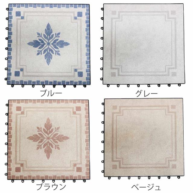 ジョイント式で簡単に設置することができ、お庭や、ベランダ、玄関周りなどを素敵にイメージチェンジできます。柄は4種類あるので、同じ柄で統一したり、違う柄と組み合わせたりと自由にアレンジできます。