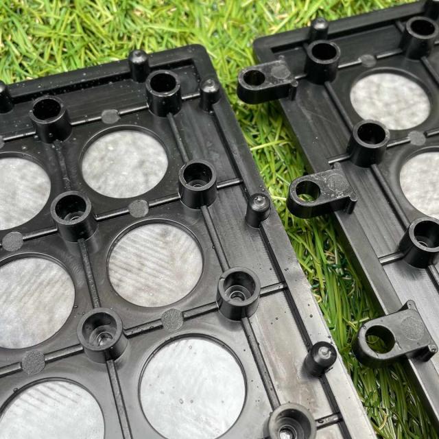 屋外用床材で使用されている塩化ビニル樹脂素材のパネルです。本物のタイルと違い軽いので、設置作業がしやすいのも嬉しいポイントです。