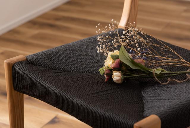 座面のペーパーコードは、丈夫で使うごとに少しずつ体の形に馴染む素材です。編み目に隙間があるので通気性が良く、夏でも蒸れにくく快適です。また、冬は隙間に温まった空気が通るため、座面がひんやりしにくく暖かい座り心地になります。