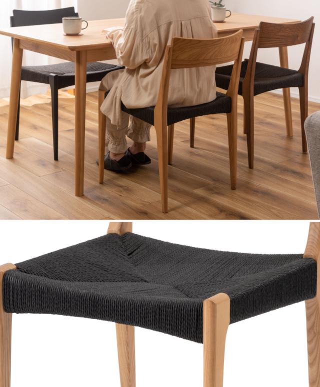 ダイニングチェア 2脚セット 疲れにくい 背もたれ 持ち運び簡単 座面高45cm ( チェア 椅子 食卓椅子 いす イス ダイニング 2脚 セット ペーパーコード 通気性 北欧風 おしゃれ アッシュ 木製 天然木 完成品 )