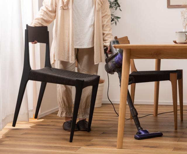 黒のスタイリッシュな座面とナチュラルな天然木の脚が、温かさとメリハリのある空間を演出します。ナチュラルテイストにはもちろん、モダンテイストや和風テイストなど様々なタイプのお部屋に馴染むデザインになっています。