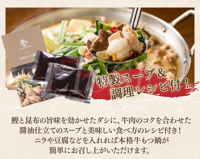牛内臓肉(国産)、もつ鍋つゆ醤油【醤油、砂糖、味醂、かつお、食塩、ビーフエキス、昆布エキス/酒精】、にんにく、唐辛子